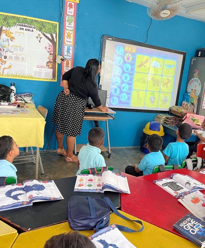 Entre los 13 centros educativos están distribuidas 13 aulas virtuales, las cuales desarrollan plataformas educativas para la enseñanza del idioma inglés, las cuales están enlazadas con los libros de texto, para que de esta manera los estudiantes tengan una mejor experiencia dentro del espacio educacional aprendiendo un segundo idioma.
